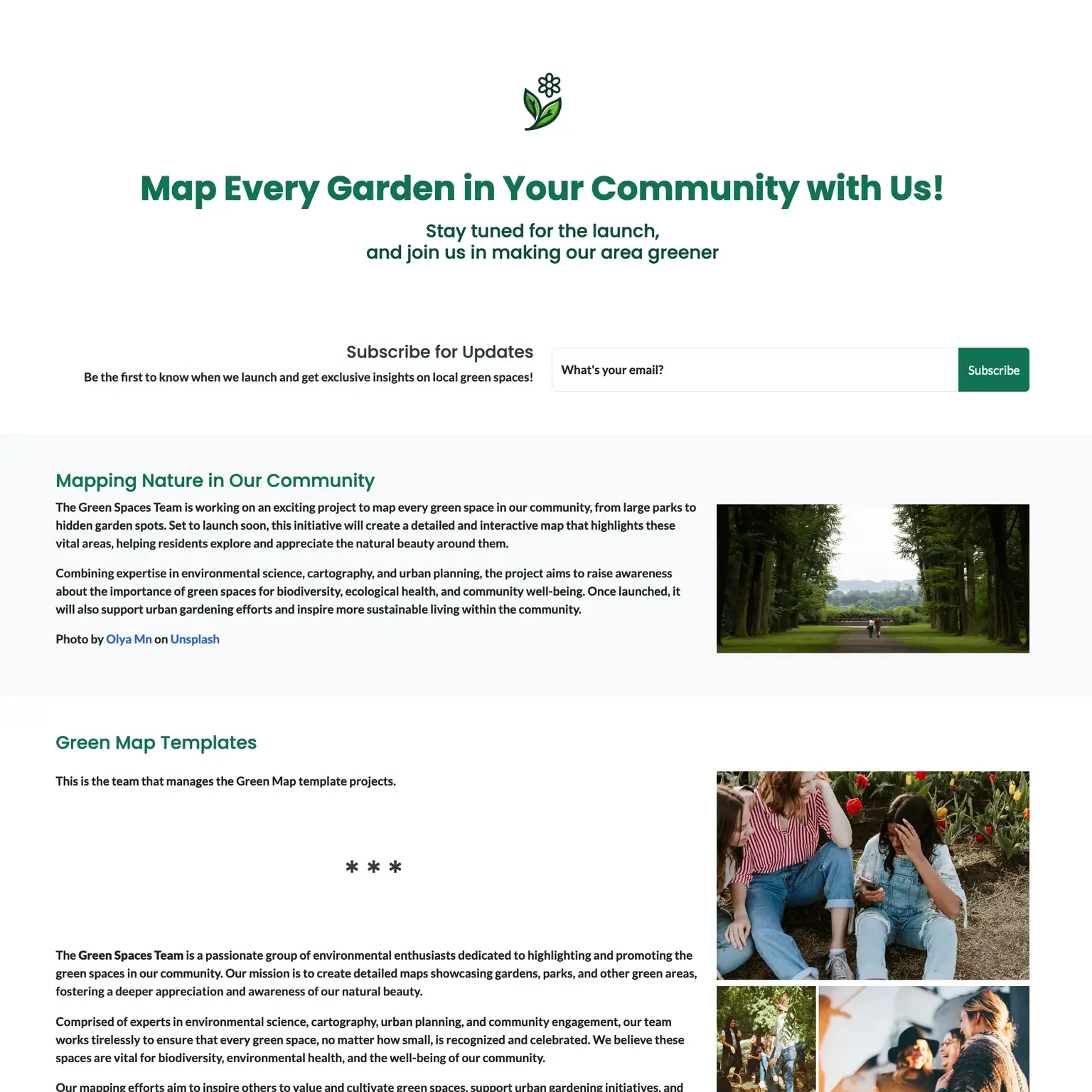 Be the first to know when we launch and get exclusive insights on local green spaces!